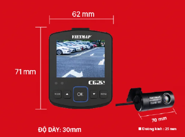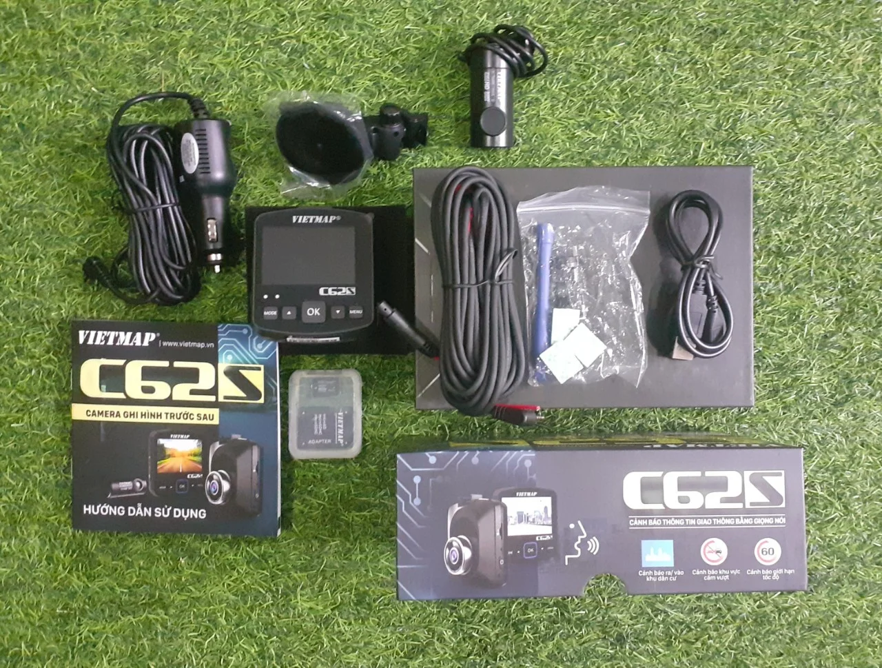 | Phụ kiện kèm theo | – Máy VietMap C62s – Camera sau C62s – Giá đỡ chân không – Sạc nguồn ô tô – Thẻ nhớ 16gb Class 10 – Sách HDSD |