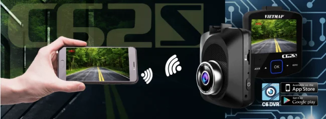 VIETMAP C62S trang bị công nghệ truyền dữ liệu thông qua kết nối WIFI không dây, giúp việc xem lại, lưu trữ chia sẻ video lên mạng xã hội dễ dàng trên các thiết bị HĐH Android, IOS.